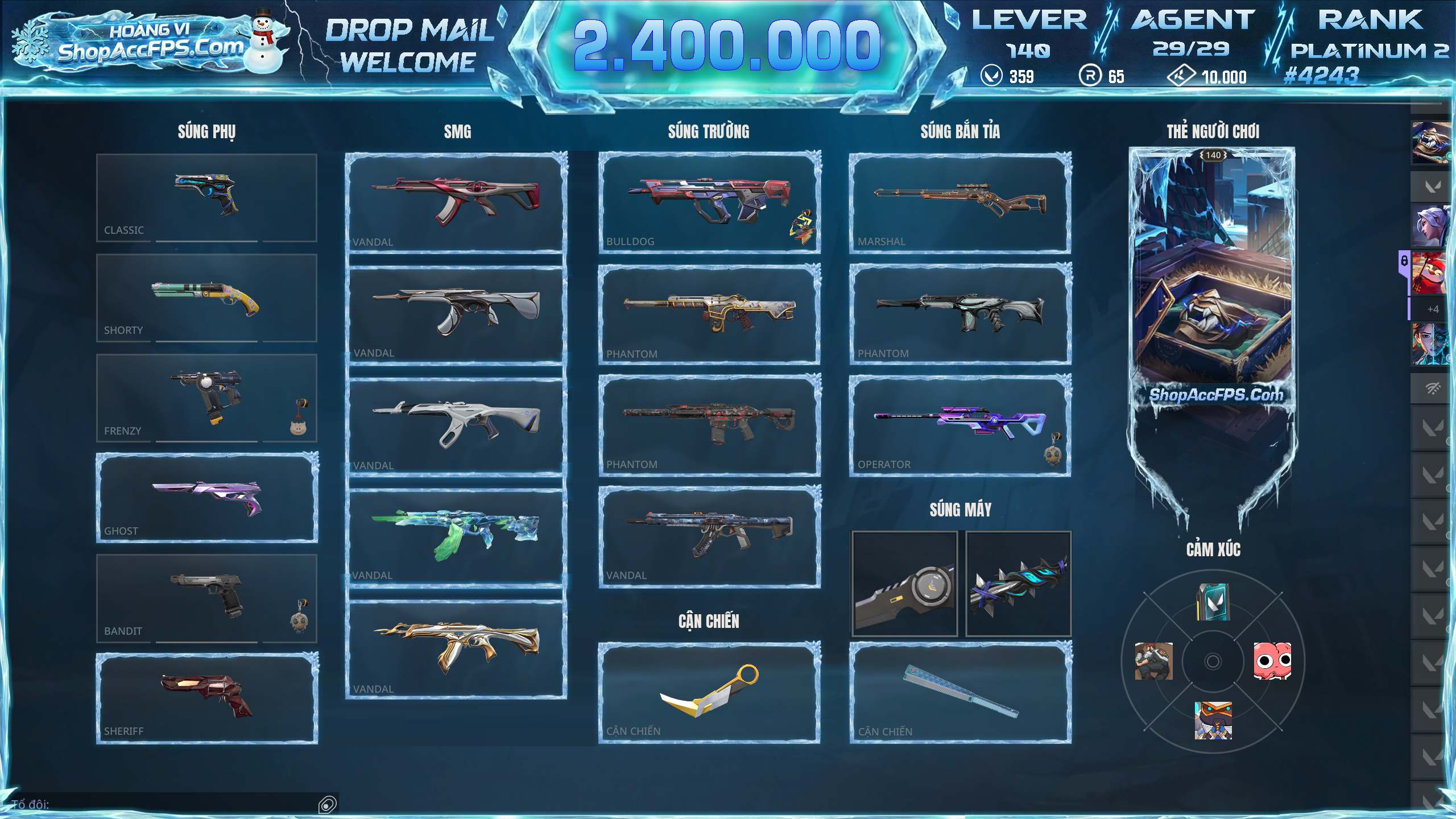 Skin Sung : Ghost - XeroFang , Sheriff - Singularity , Vandal - ChronoVoid , Vandal - Divergence , Vandal - Ion , Vandal - ,...